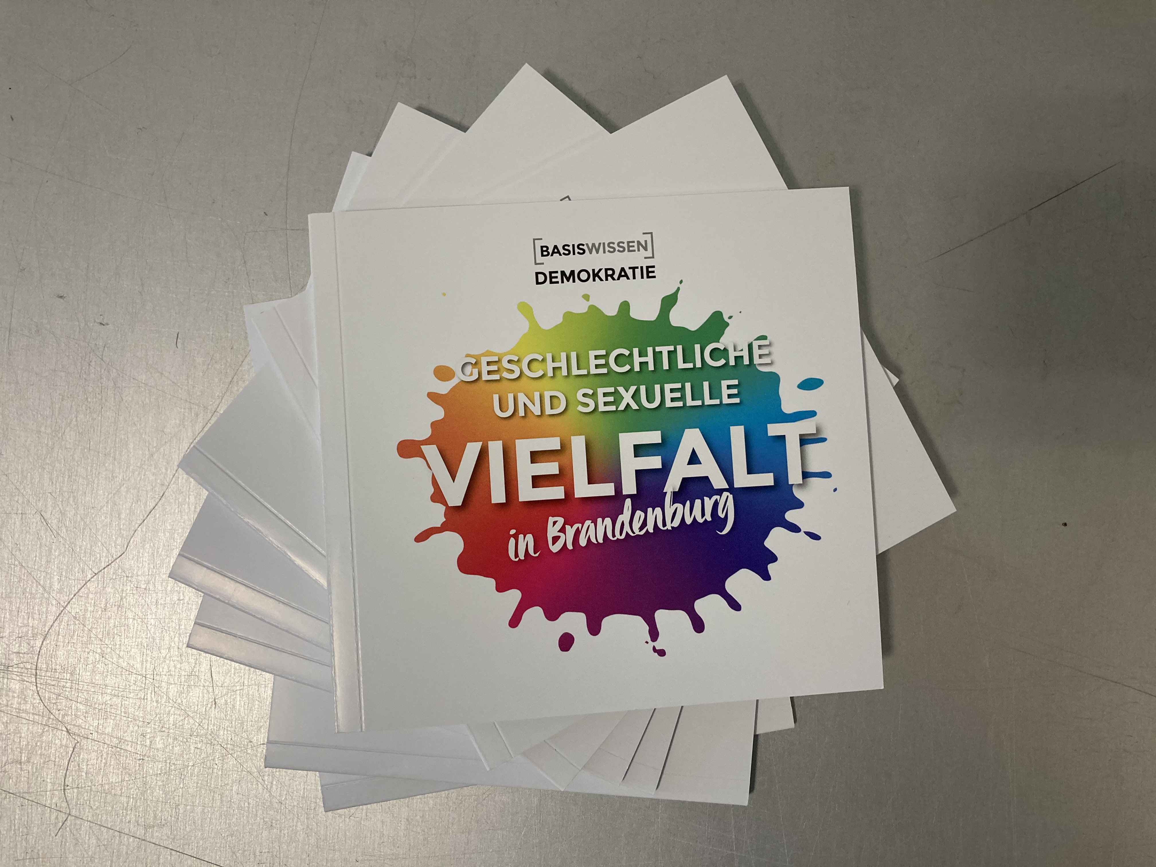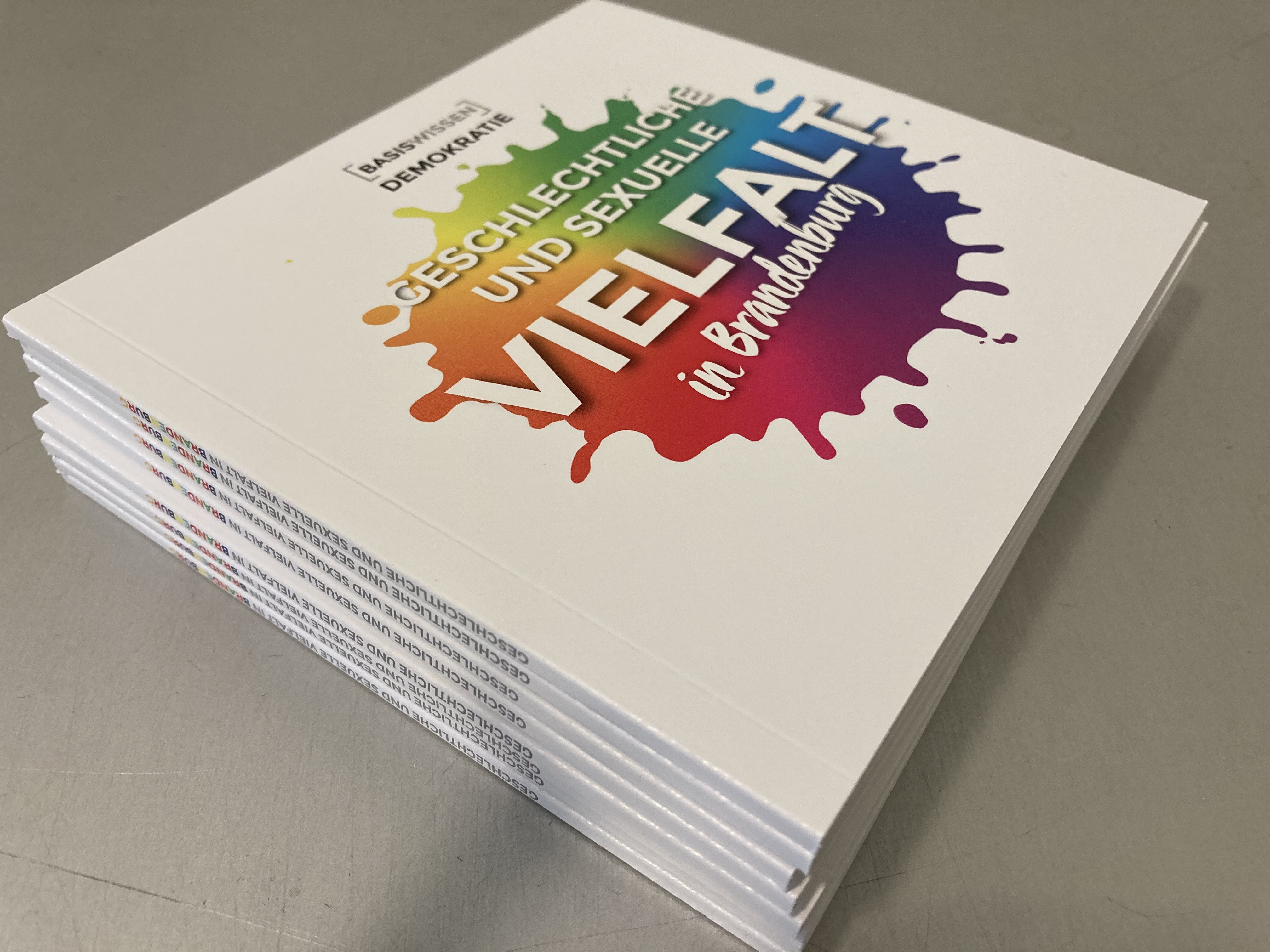 „Geschlechtliche und sexuelle Vielfalt in Brandenburg“ heißt die neue Broschüre aus der Reihe „Basiswissen Demokratie“ der Brandenburgischen Landeszentrale für politische Bildung. Das handliche Format kann jetzt im Online-Buchshop der Landeszentrale bestellt oder als PDF-Datei heruntergeladen werden.