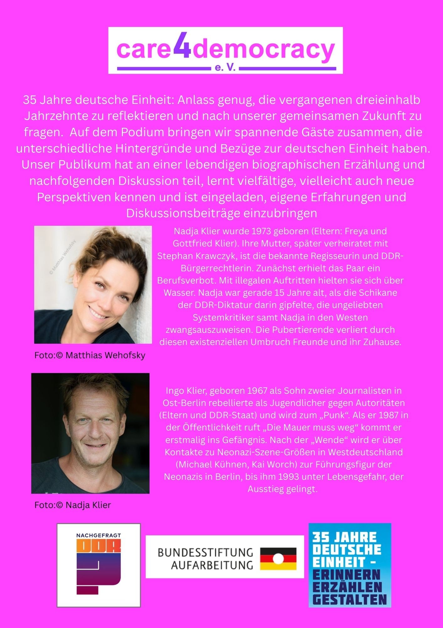Veranstalter: care4democracy  e.V.     Kooperationspartner und Förderer: Bundesstiftung Aufarbeitung